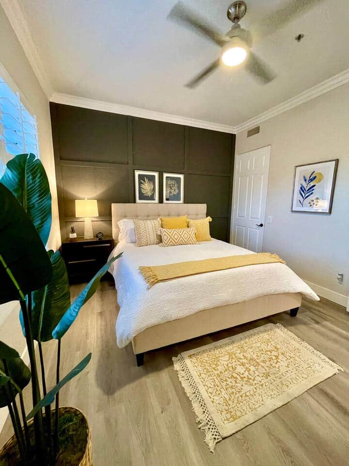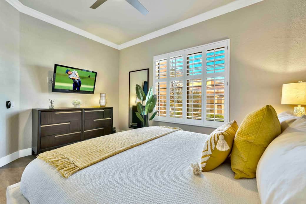 This 1 bedroom, 1 bath poolside condo has been completely renovated to fit the desert lifestyle. Villa Las Rosas offers a full private master bedroom with a king-sized bed, walk-in closet space, living room area with a queen-sized sofa bed, a luxurious bathroom retreat, and a fully stocked kitchen. The villa comes equipped with two smart tv's, a Keurig coffee maker, and in-unit washer and dryer. Your perfect desert getaway and home away from home awaits!